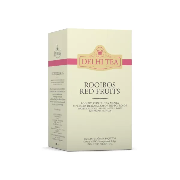 Rooibos red fruits: Rooibos con frutas, menta, petalos de rosas y frutos rojos.