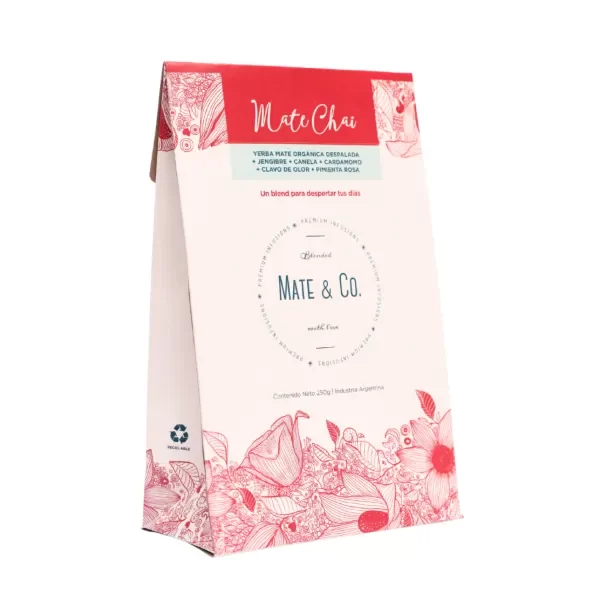 MATE CHAI: Yerba mate, jengibre, canela, especias y pimienta rosa. Intenso y especiado. La yerba mate brinda su energía herbal característica, mientras que el jengibre y la canela suman notas cálidas y envolventes. Las especias y la pimienta rosa elevan el perfil con un toque exótico, vibrante y ligeramente picante. Una mezcla pensada para quienes disfrutan rituales intensos, sabores complejos y un mate que enciende los sentidos.