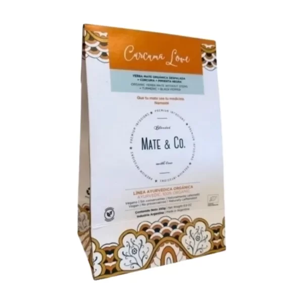 CURCUMA LOVE: Yerba mate, cúrcuma y pimienta. Cálida y revitalizante. La yerba mate aporta su energía herbal característica, mientras que la cúrcuma suma notas terrosas y propiedades antiinflamatorias. La pimienta potencia su efecto funcional y agrega un toque especiado, sutilmente picante. Una mezcla pensada para quienes buscan bienestar, sabor profundo y un mate que reconforta cuerpo y espíritu.