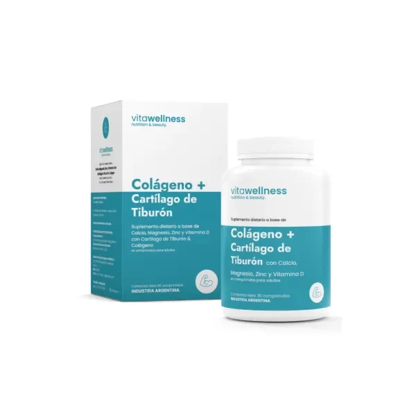 Descubrí este suplemento integral, formulado para potenciar tu salud ósea, articular y general. El Colágeno + Cartílago de Tiburón de Vitawellness combina colágeno hidrolizado, cartílago de tiburón, calcio, magnesio, zinc y vitamina D, brindándote una fórmula avanzada para el bienestar y el cuidado diario.
