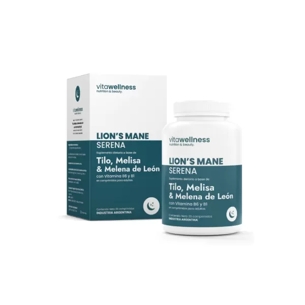 Descubre Lions Mane Serena, un suplemento natural diseñado para ofrecerte relajación y un sueño reparador. Esta fórmula exclusiva combina los beneficios del Tilo, Melisa y Melena de León, enriquecida con Vitaminas B6 y B1, para un enfoque integral hacia el bienestar.